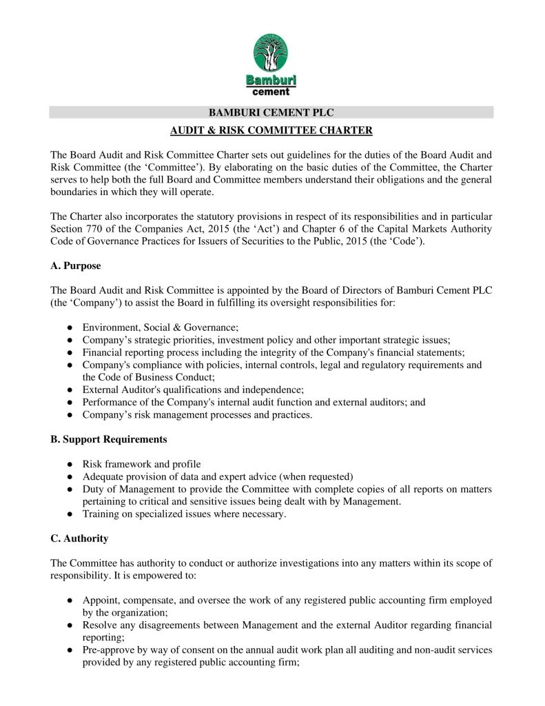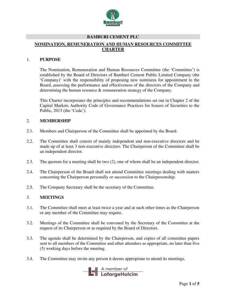 Bamburi cement Plc Nomination, Remuneration and Human Resources Committee Charter