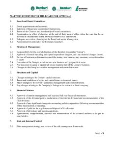 Matters Reserved for the Board